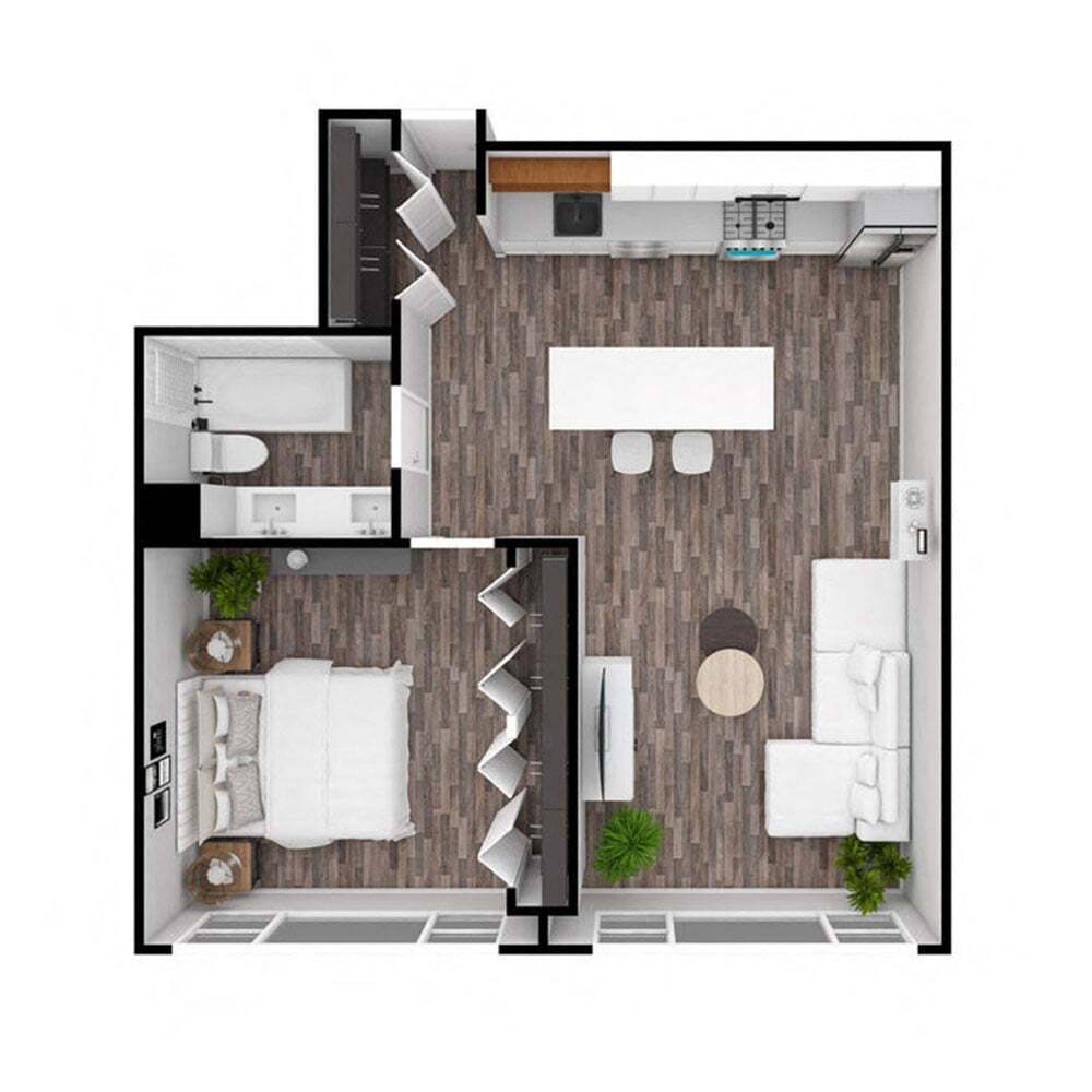 Modelo de apartamento: S6Desde $1,083Estudio, 1 Baño, 480 sq ftDisponible January 12, 2026![]()