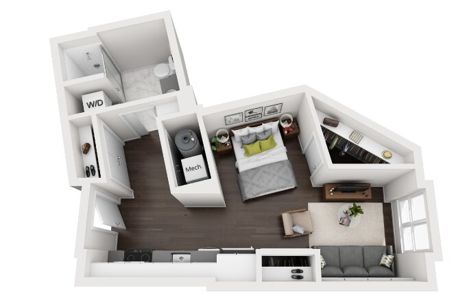Estudio, 1 Baño, 625 pies²Precio Mensual TotalDisponible AhoraEl más grandeEsta opción tiene las unidades más grandes para este modeloGalería del Modelo