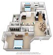 Modelo de apartamento: Carlton ClassicLlame para Precios2 Dormitorios, 2 Baños, 1091 sq ftNo DisponibleCarlton Classic - Plano 1