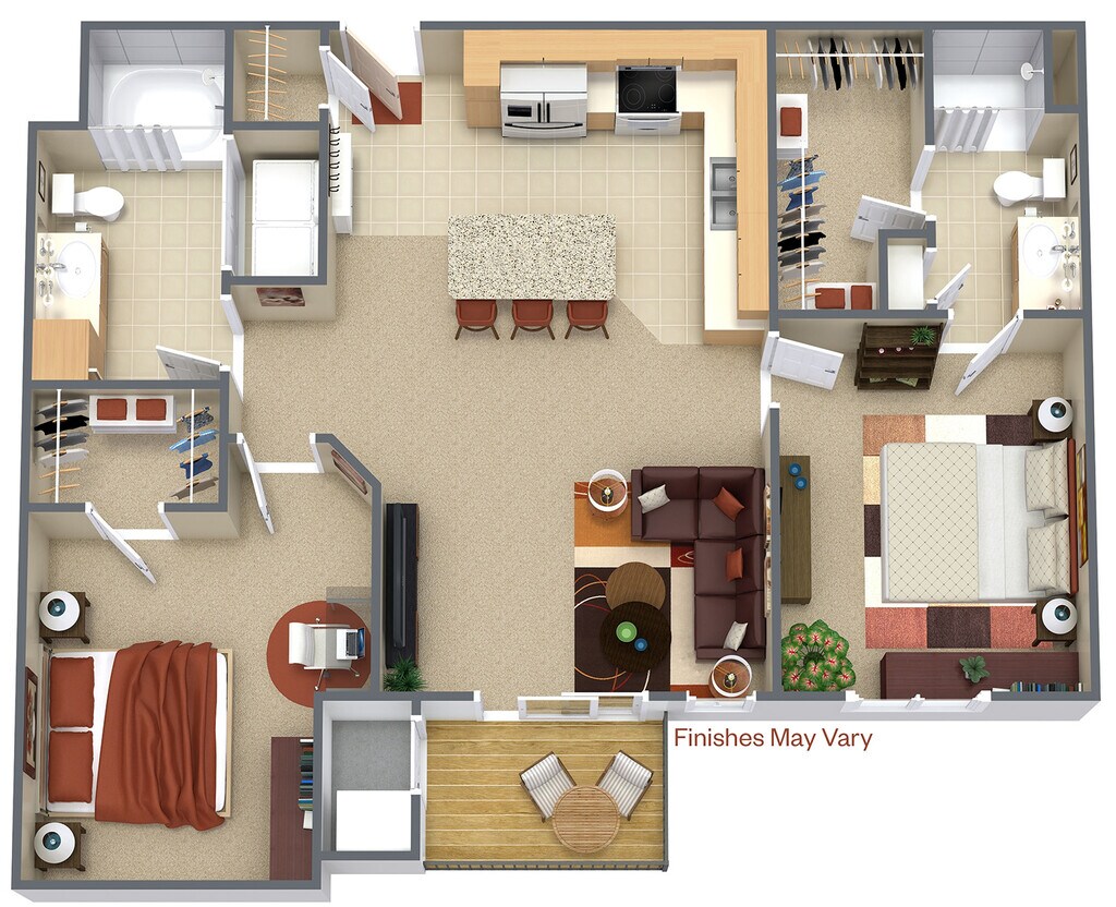 1 Dormitorio, 1 Baño, 890 pies²Disponible AhoraGalería del Modelo