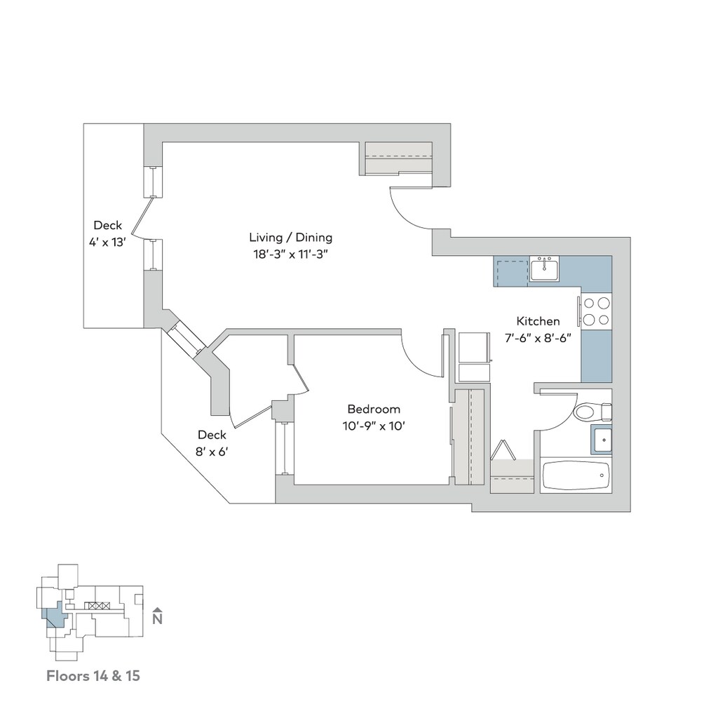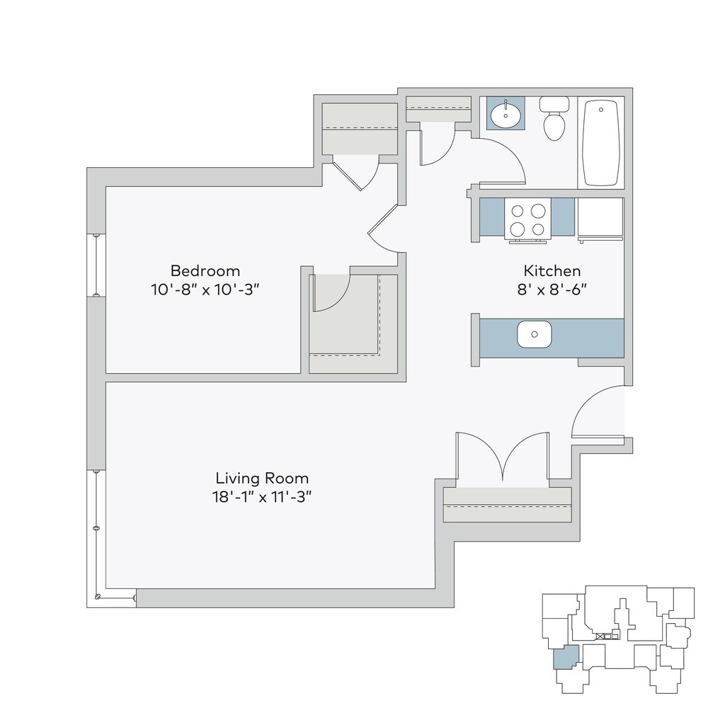 Estudio, 1 Baño, 475 pies²Galería del Modelo