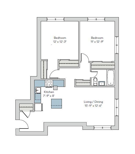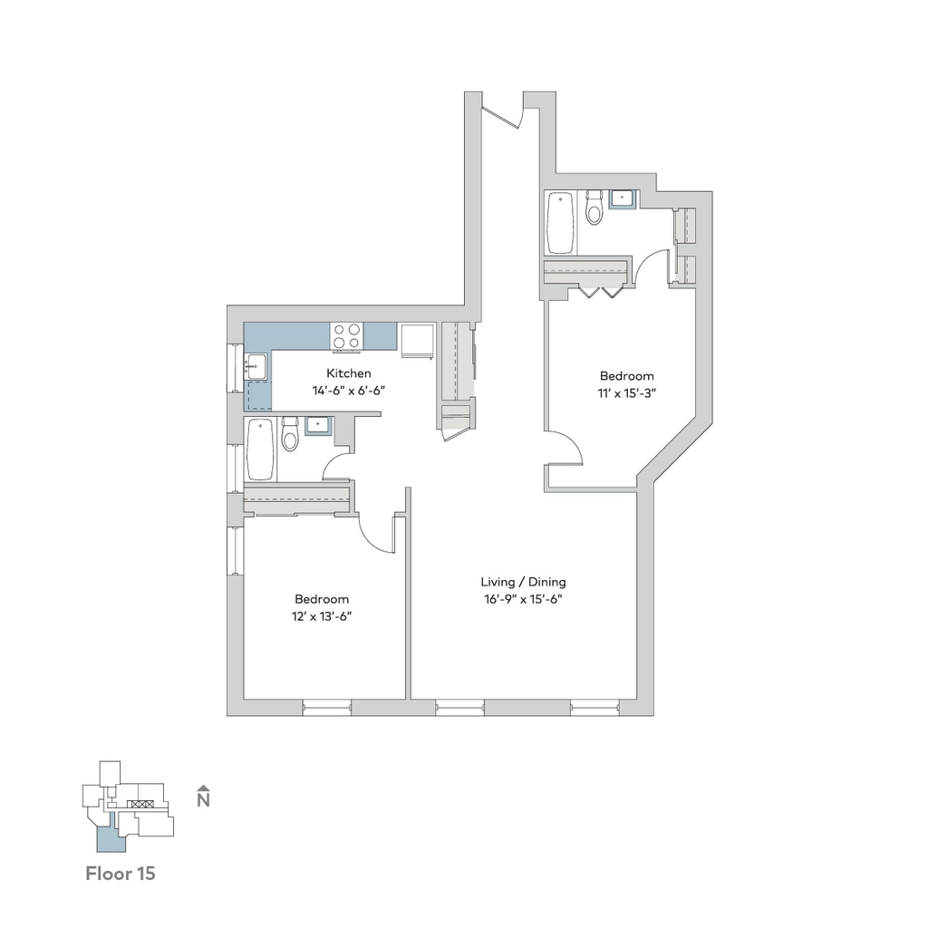 mon-1bv - Plano 1 Unidad de apartamento: 15VModelo de apartamento: mon-1bv1 Dormitorio, 1 Baño, 574 sq ftDisponible Ahoramon-1br
