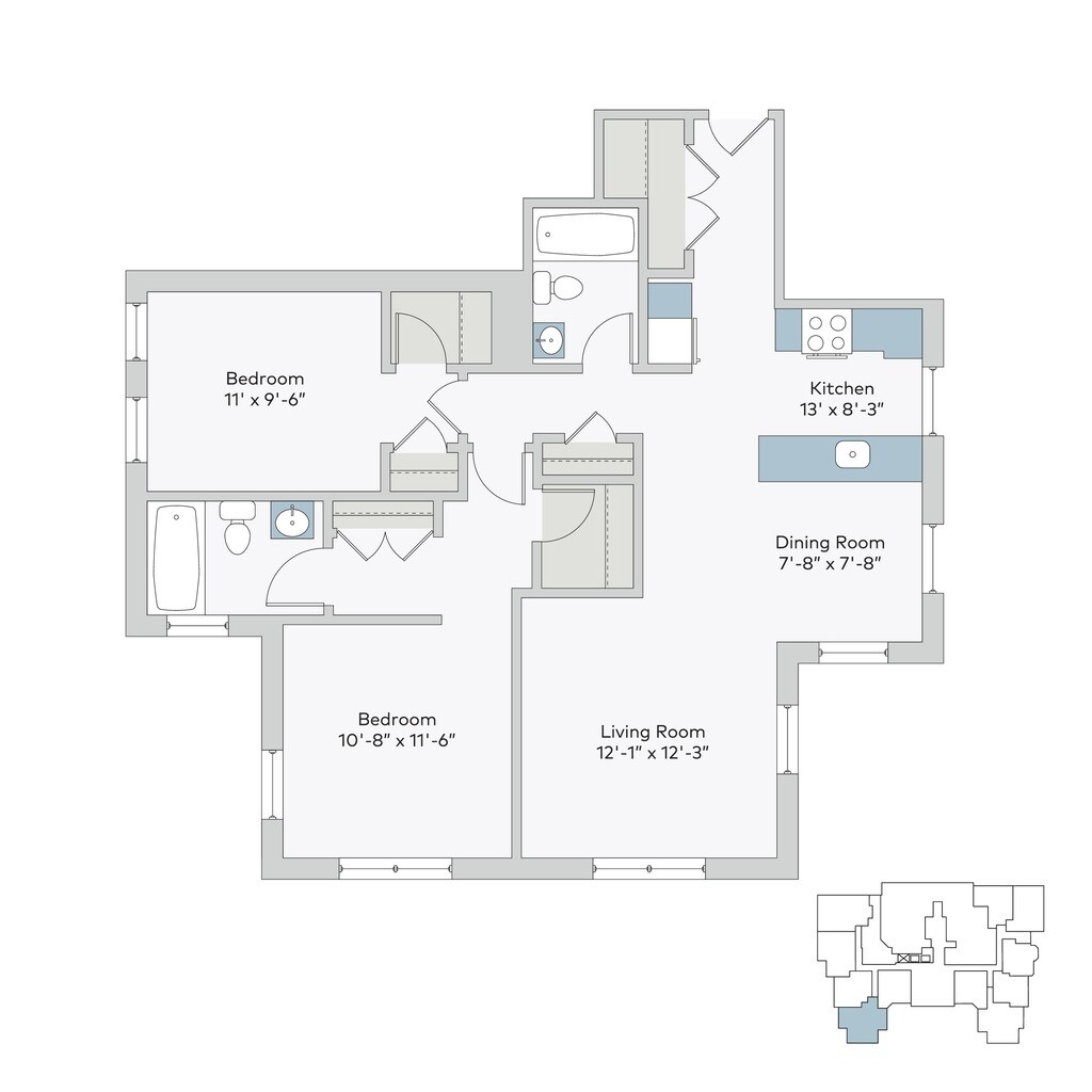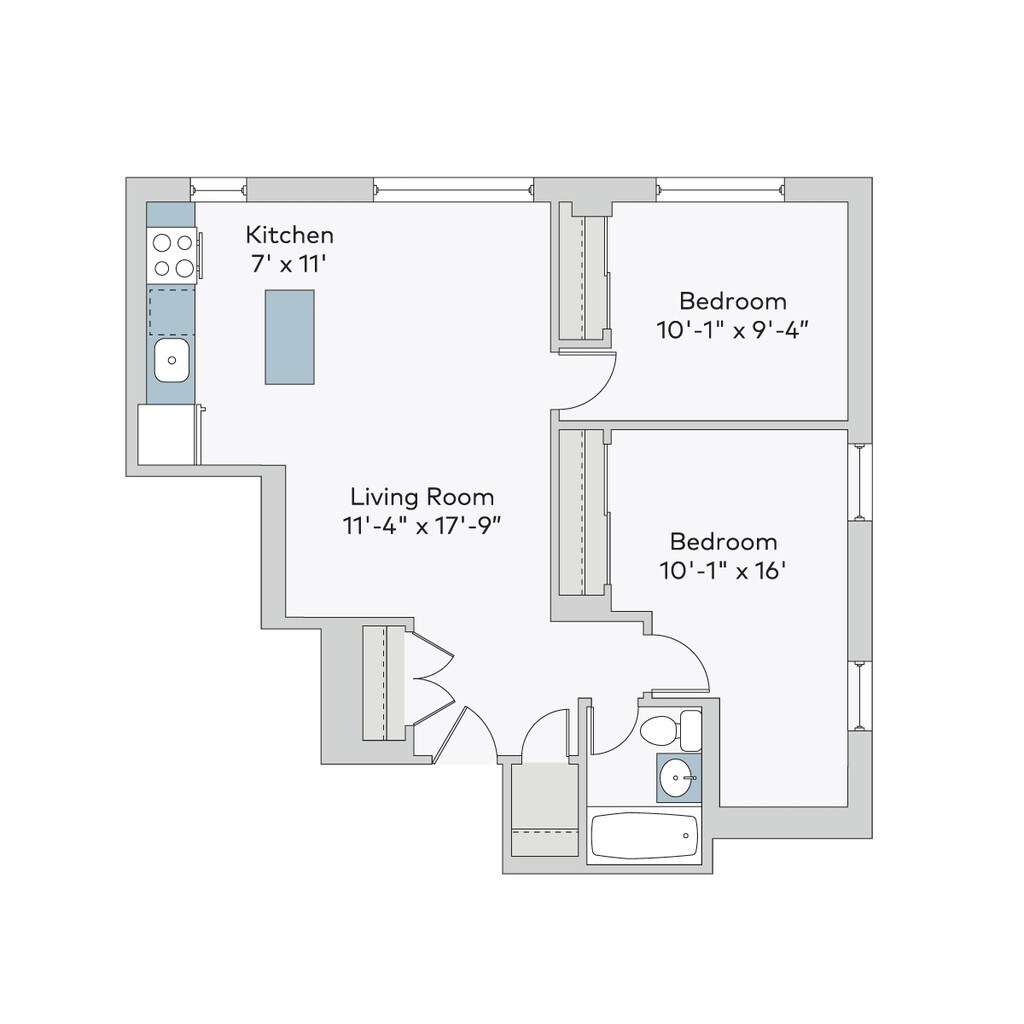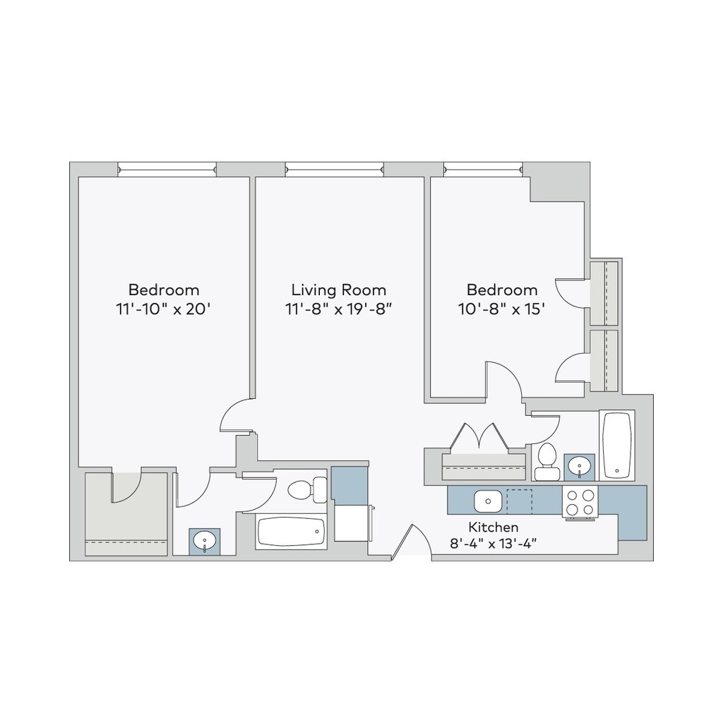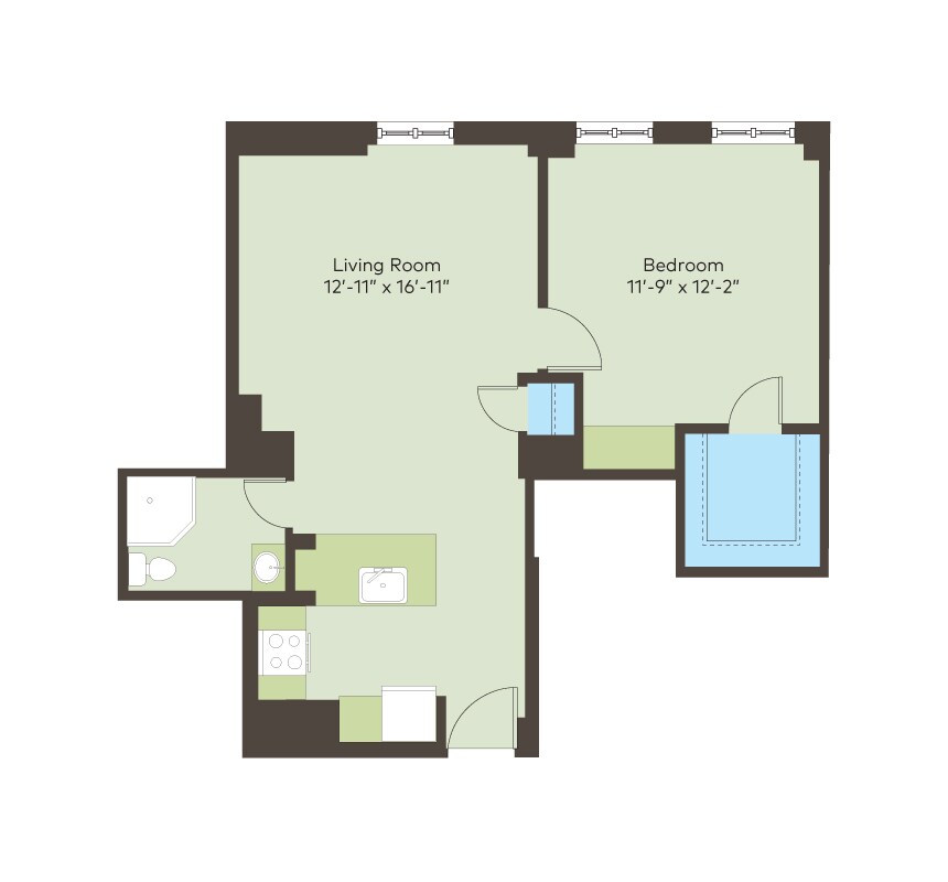 Estudio, 1 Baño, 400 pies²Disponible AhoraGalería del Modelo