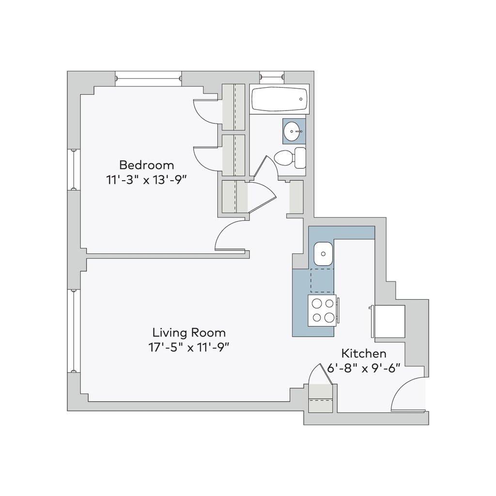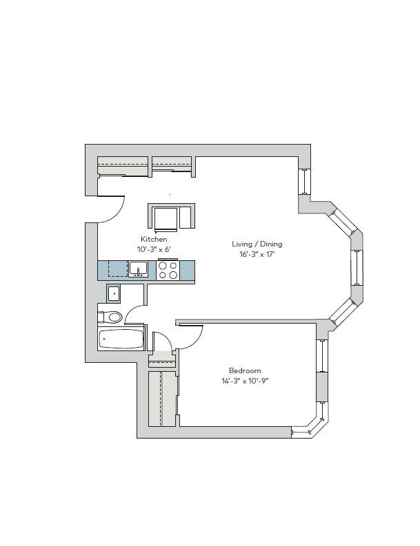 Modelo de apartamento: mon-1bv1 Dormitorio, 1 Baño, 574 sq ftDisponible Ahora![]()