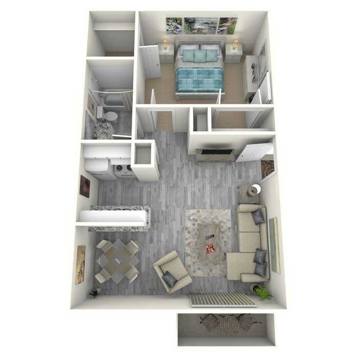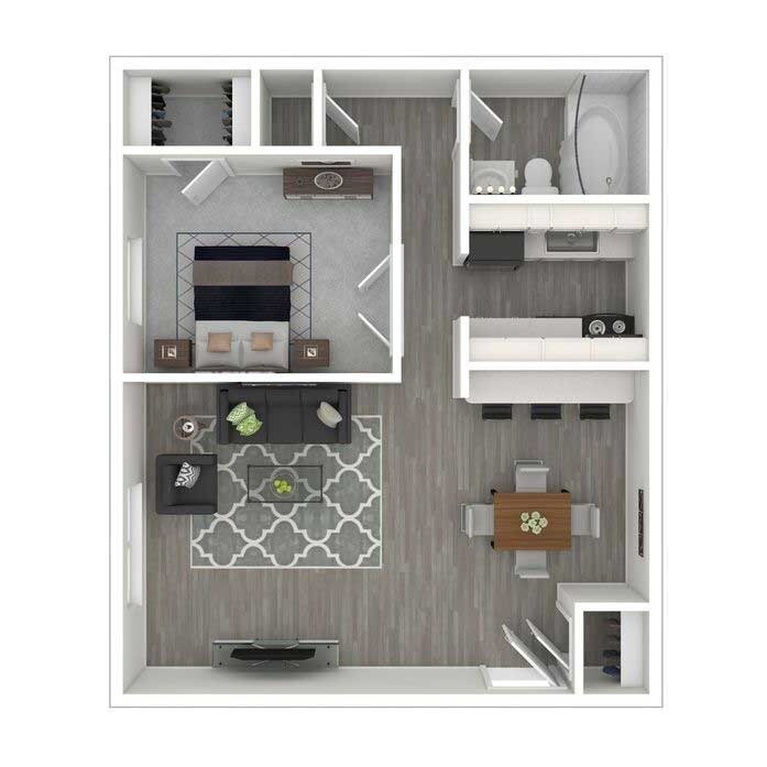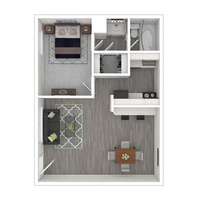 Modelo de apartamento: A101 Dormitorio, 1 Baño, 622 sq ftDisponible November 14, 2025![]()