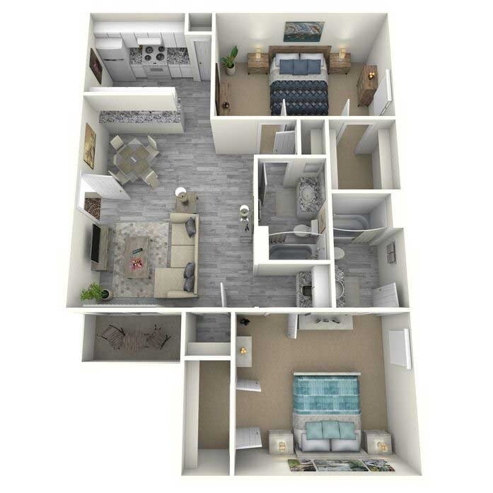 1 Dormitorio, 1 Baño, 633 pies²Disponible AhoraGalería del Modelo