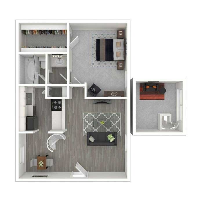 Modelo de apartamento: A7R1 Dormitorio, 1 Baño, 558 sq ftDisponible Ahora![]()