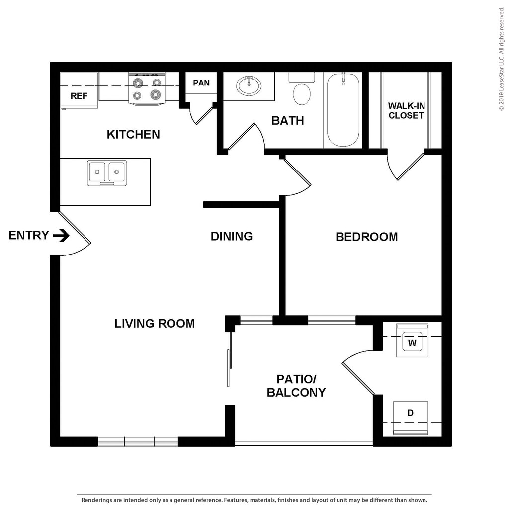 1 Dormitorio, 1 Baño, 642 pies²Disponible AhoraGalería del Modelo