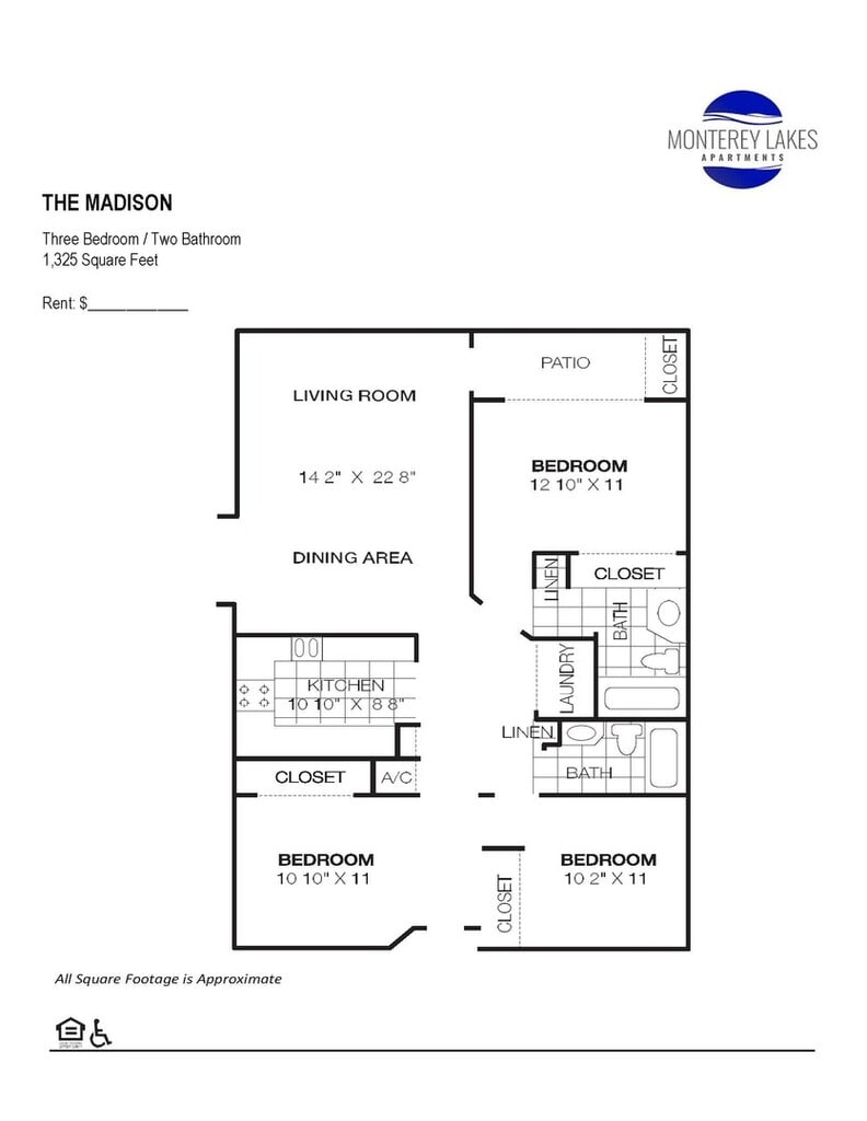 El rango de alquiler de Apartamentos 1 dormitorios a 3 dormitorios en Monterey Lakes Apartments van desde $1,400 a $2,250