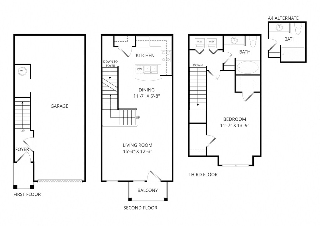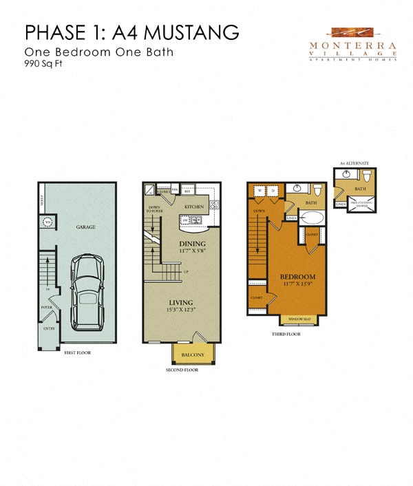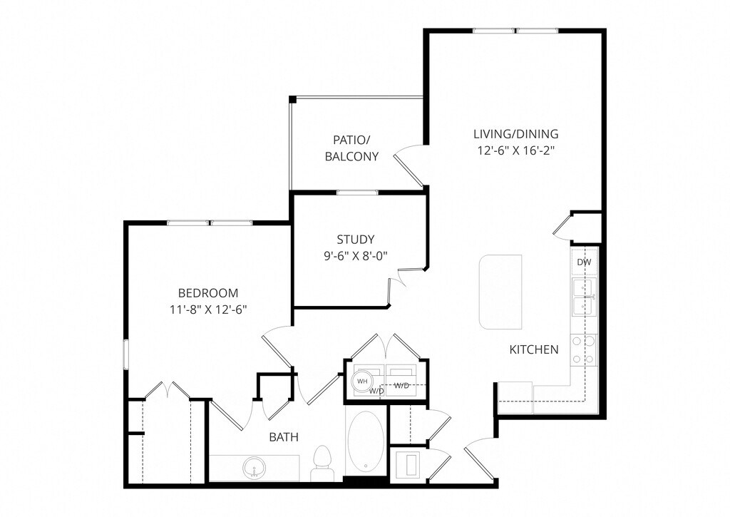Modelo de apartamento: A61 Dormitorio, 1 Baño, 770-778 sq ftDisponible Ahora![]()