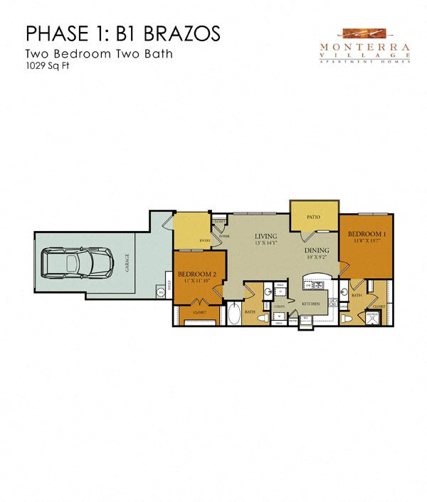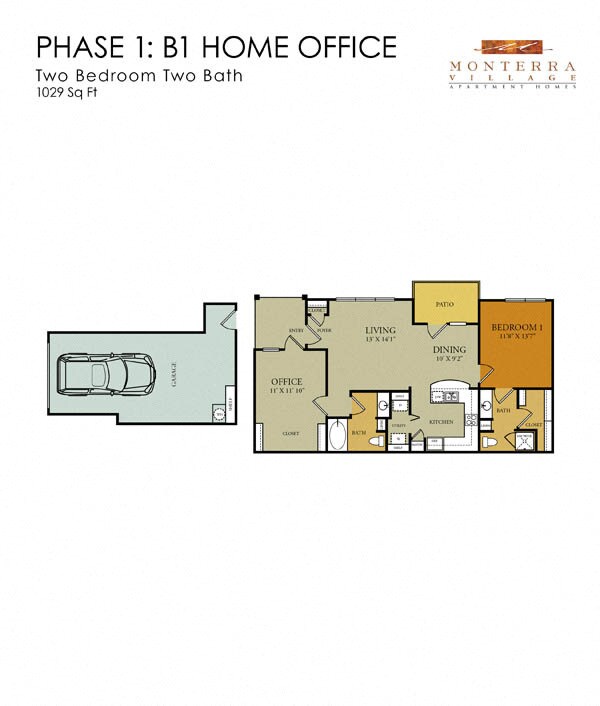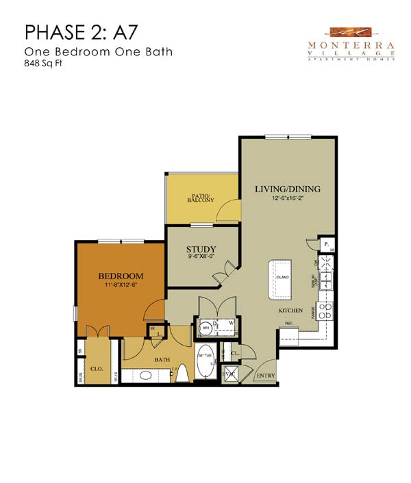 Modelo de apartamento: A71 Dormitorio, 1 Baño, 848 sq ftDisponible Ahora![]()