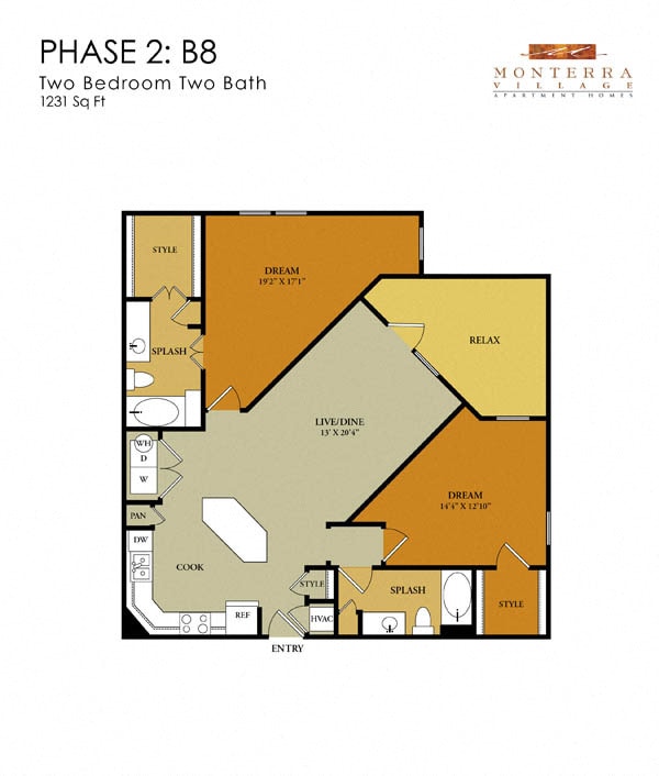 1 Dormitorio, 1 Baño, 750 pies²Disponible AhoraGalería del Modelo