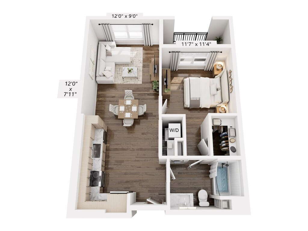 Modelo de apartamento: A1Desde $2,3501 Dormitorio, 1 Baño, 722 sq ftDisponible May 29, 2026Los planos son representaciones artísticas. Todas las dimensiones son aproximadas. El producto y las especificaciones reales pueden variar en tamaño o detalle. No todas las características están disponibles en cada vivienda en alquiler. Por favor, consulta con un representante para obtener más detalles.