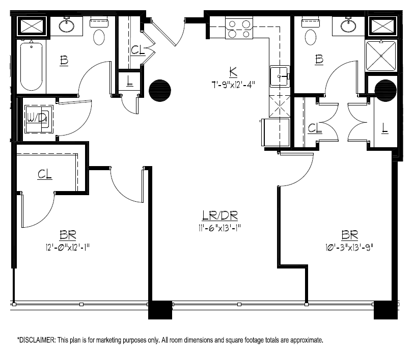 One Bedroom One Bath - Plano 1 2 Dormitorios