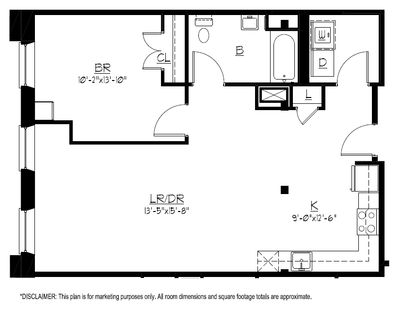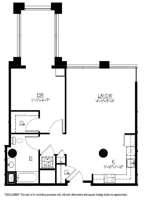 One Bedroom One Bath - Plano 1 Unidad de apartamento: 308Modelo de apartamento: One Bedroom One Bath$2,1301 Dormitorio, 1 Baño, 845 sq ftDisponible Ahora![]()
