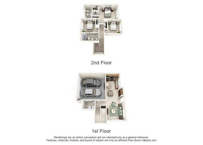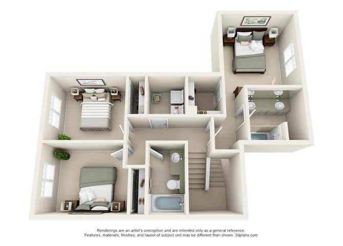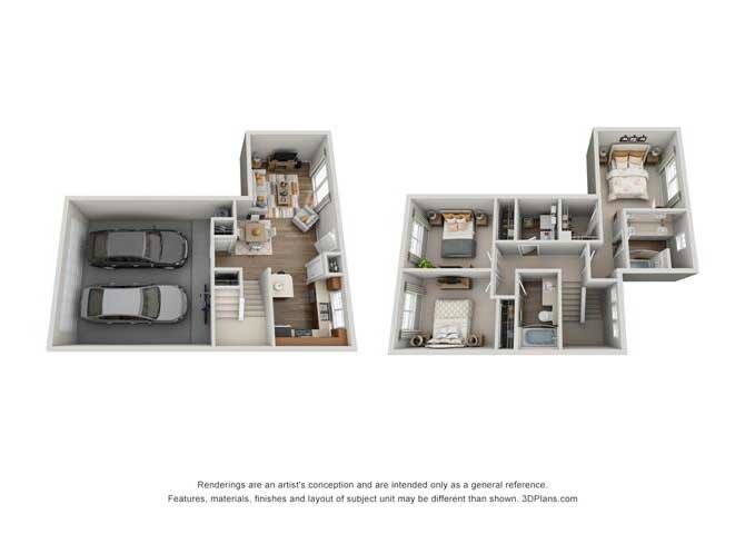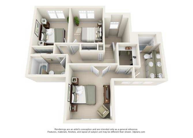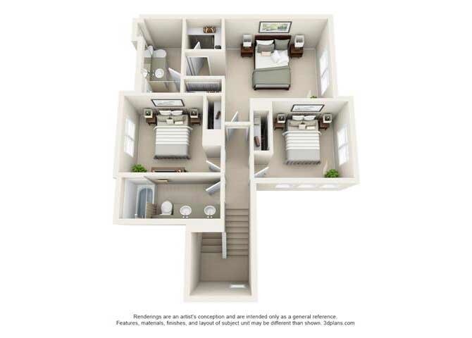 Tuscany - Plano 3 Los planos de la planta son una interpretación artística. Todas las dimensiones son aproximadas. Los tamaños o el detalle del producto real y sus especificaciones pueden variar. No todas las características están disponibles en todos los hogares para rentar. Los precios y la disponibilidad están sujetos a cambios. El alquiler que se muestra es mensual. Se pueden aplicar ciertos cargos, por ejemplo, entrega de paquetes, recolección de basura, agua, servicios, etc. Depositos varian. Consulta a un representante para conocer detalles.