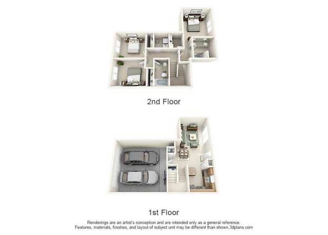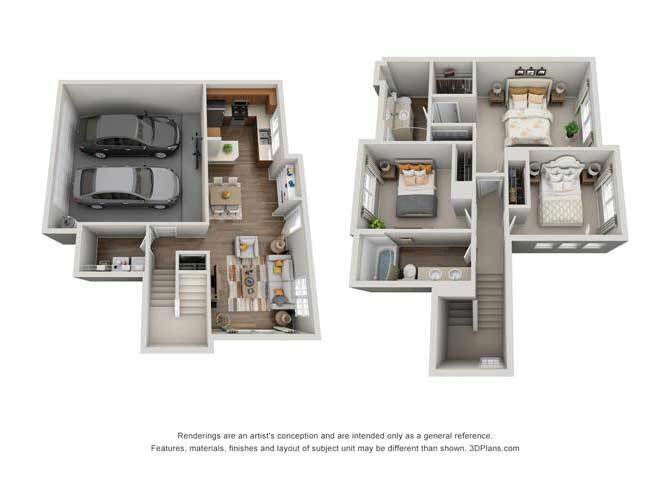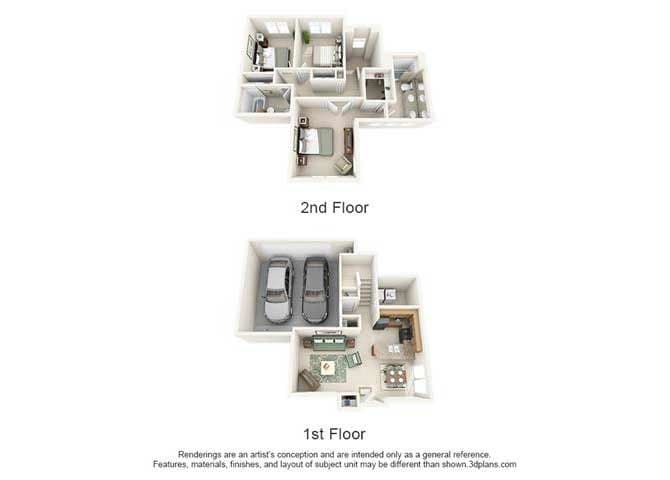 Tuscany - Plano 2 Los planos de la planta son una interpretación artística. Todas las dimensiones son aproximadas. Los tamaños o el detalle del producto real y sus especificaciones pueden variar. No todas las características están disponibles en todos los hogares para rentar. Los precios y la disponibilidad están sujetos a cambios. El alquiler que se muestra es mensual. Se pueden aplicar ciertos cargos, por ejemplo, entrega de paquetes, recolección de basura, agua, servicios, etc. Depositos varian. Consulta a un representante para conocer detalles.