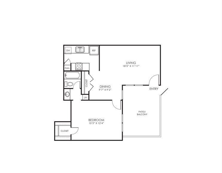 A1-Alt - Plano 1 Unidad de apartamento: 114CModelo de apartamento: A1-Alt1 Dormitorio, 1 Baño, 708 sq ftDisponible AhoraPlano: A1