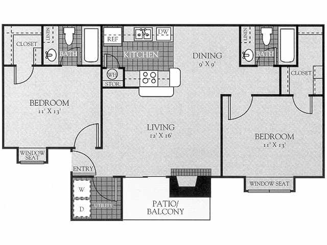 1 Bed, 1 Bath (80% Income Restricted) - Plano 2 ![]()