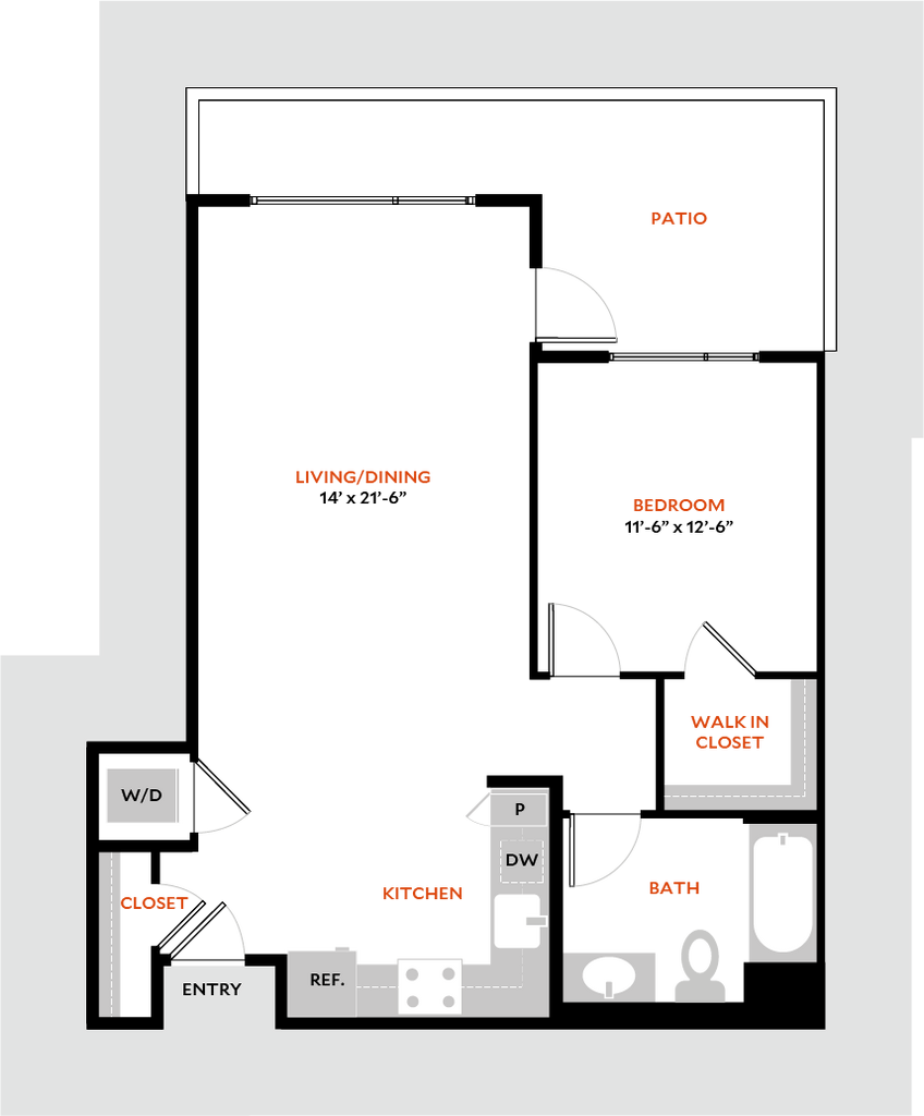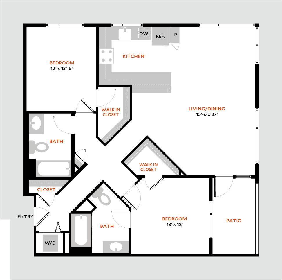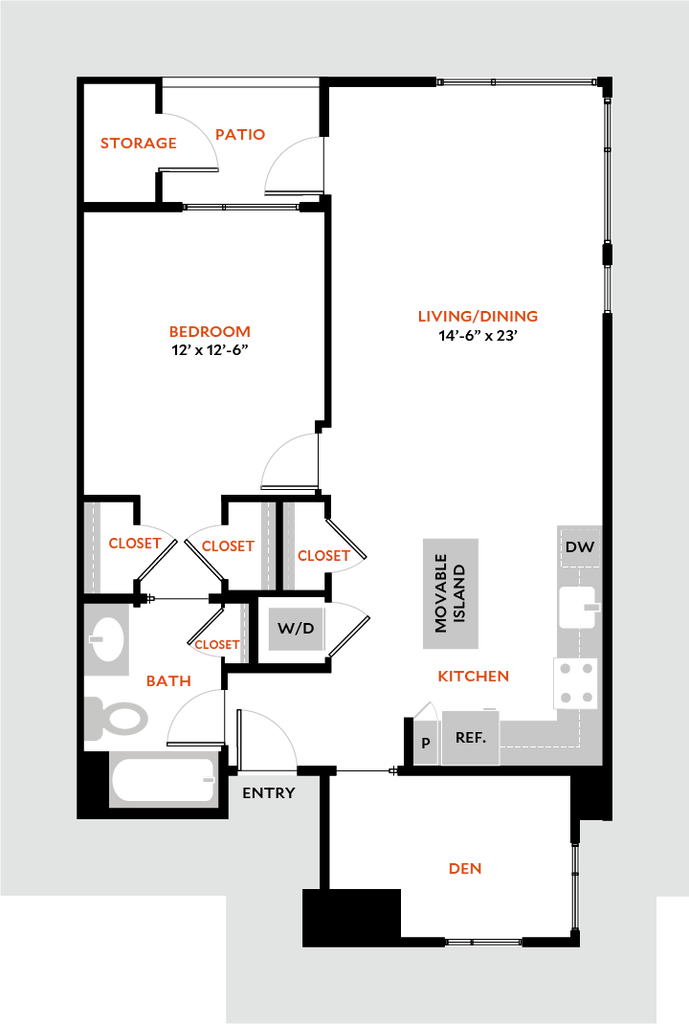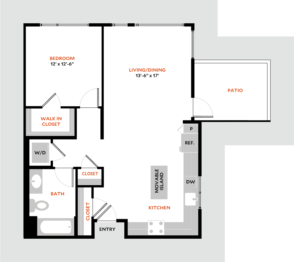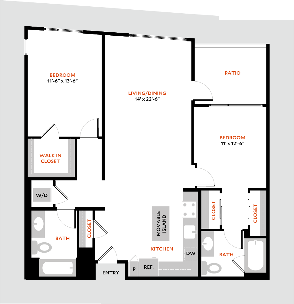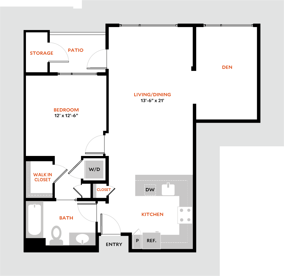 Modelo de apartamento: Plan 1EDesde $3,9961 Dormitorio, 1 Baño, 727 sq ftDisponible Ahora![]()
