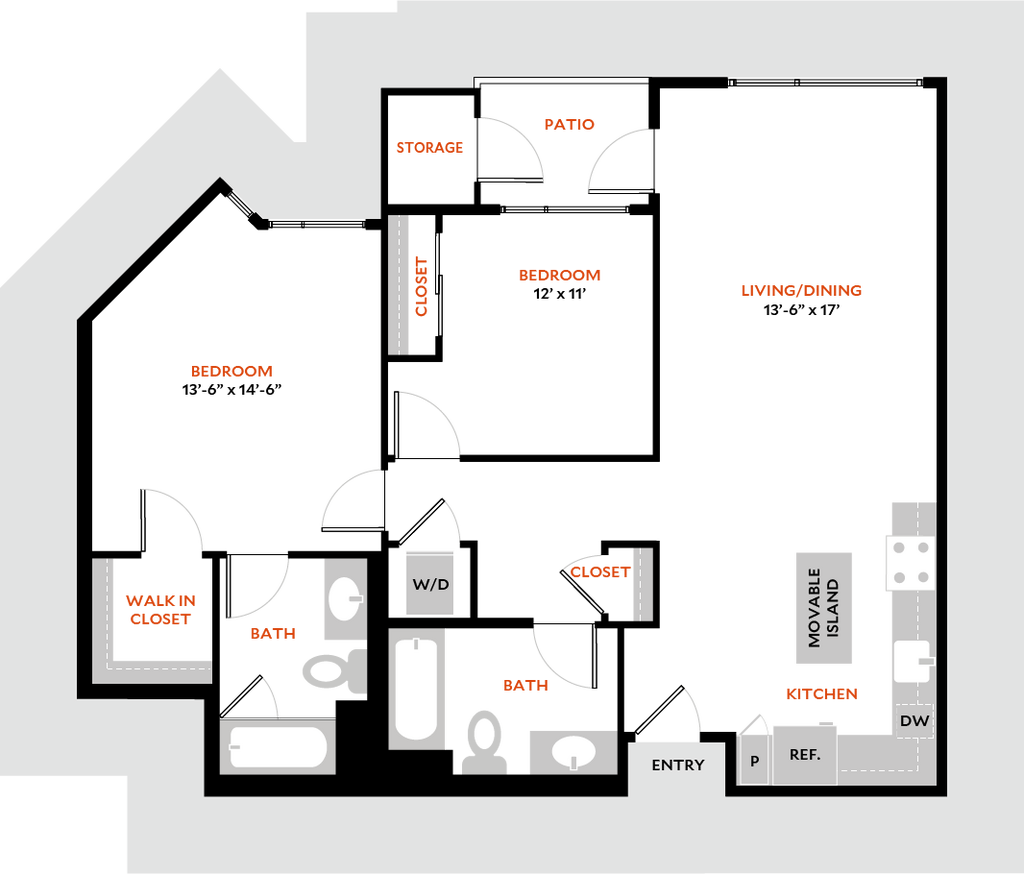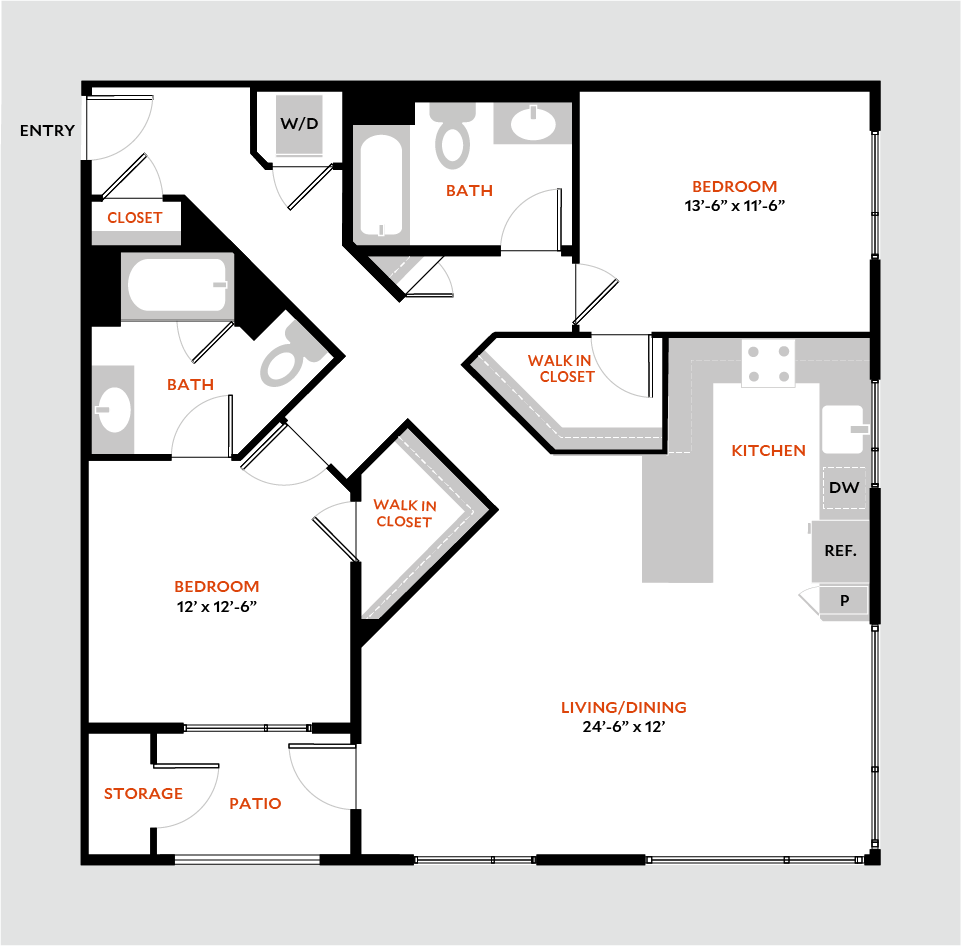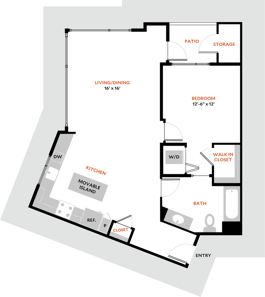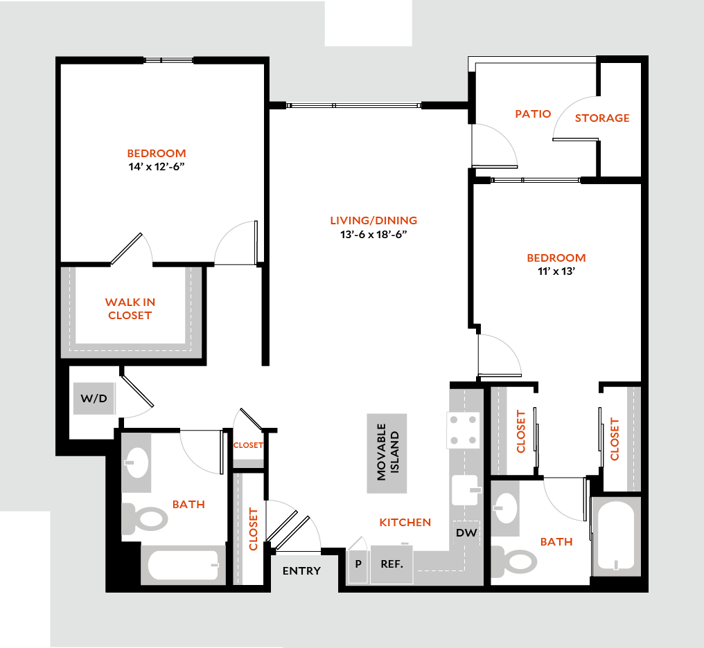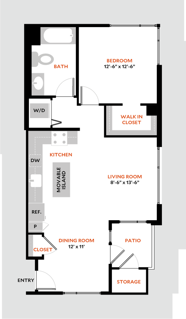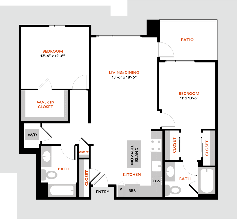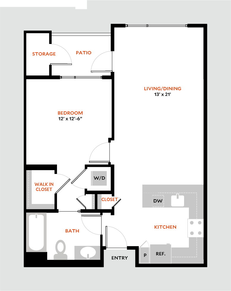 Modelo de apartamento: Plan 1EDesde $3,9961 Dormitorio, 1 Baño, 727 sq ftDisponible Ahora![]()
