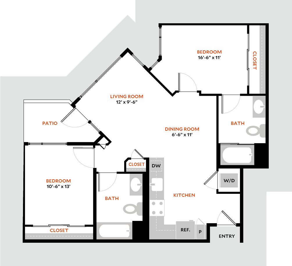 Modelo de apartamento: Plan 1H$4,1051 Dormitorio, 1 Baño, 761 sq ftDisponible Ahora![]()