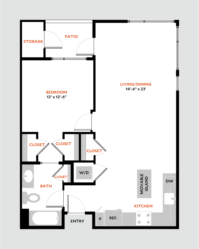 1 Dormitorio, 1 Baño, 700 pies²Disponible AhoraGalería del Modelo