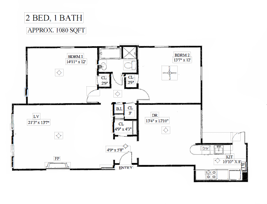 Modelo de apartamento: 2 Bed/ 1 Bath2 Dormitorios, 1 Baño, 1000 sq ftDisponible Ahora![]()