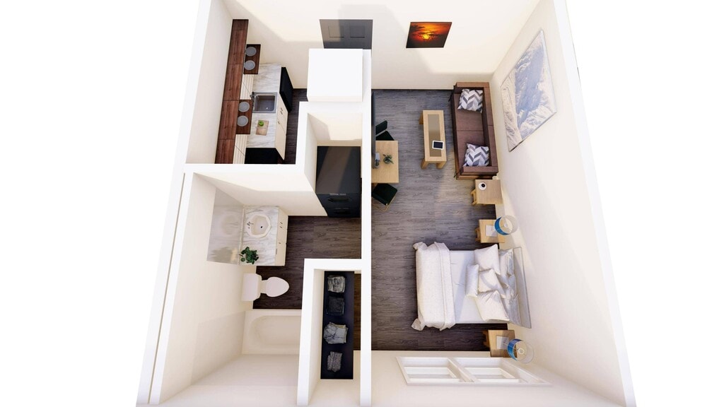 Studio - Plano 2 Furnished Studio - Top Floor