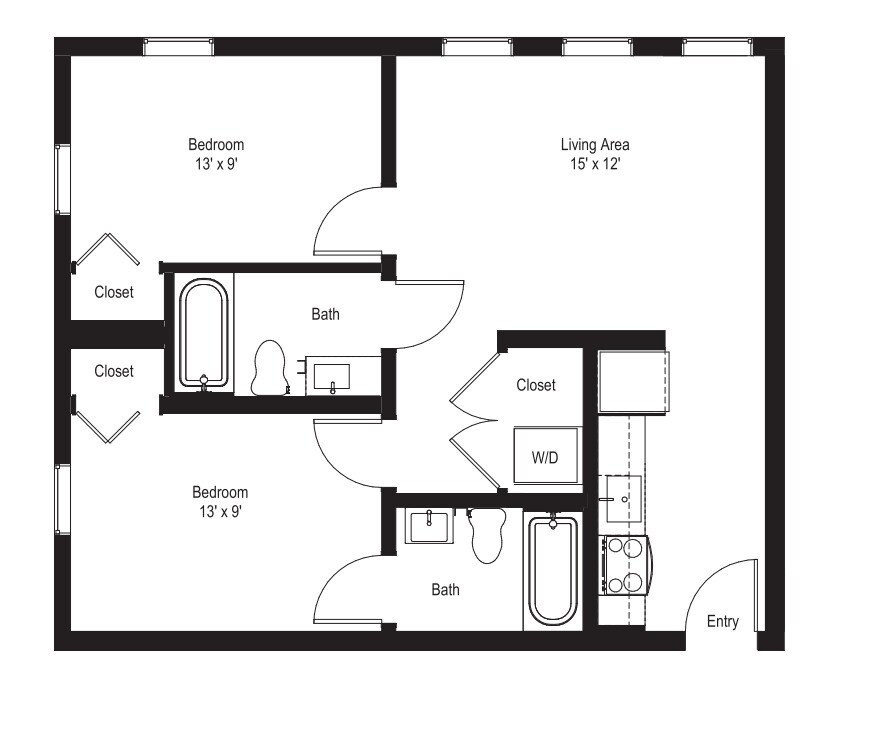 Studio B - Plano 1 Unidad de apartamento: 413Modelo de apartamento: Studio B$1,299Estudio, 1 Baño, 293 sq ftDisponible ProntoStudio - Galley