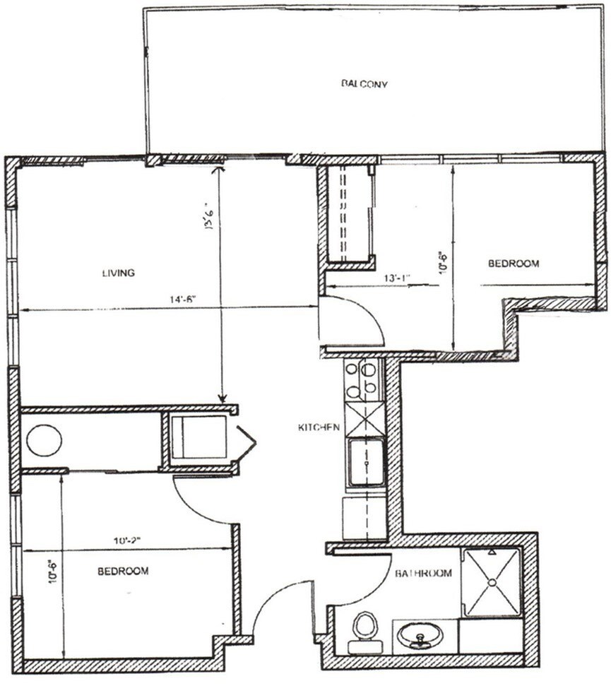 Modelo de apartamento: 2BR/1BA A2 Dormitorios, 1 Baño, 840 sq ftDisponible Ahora![]()