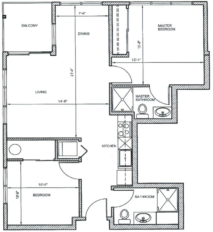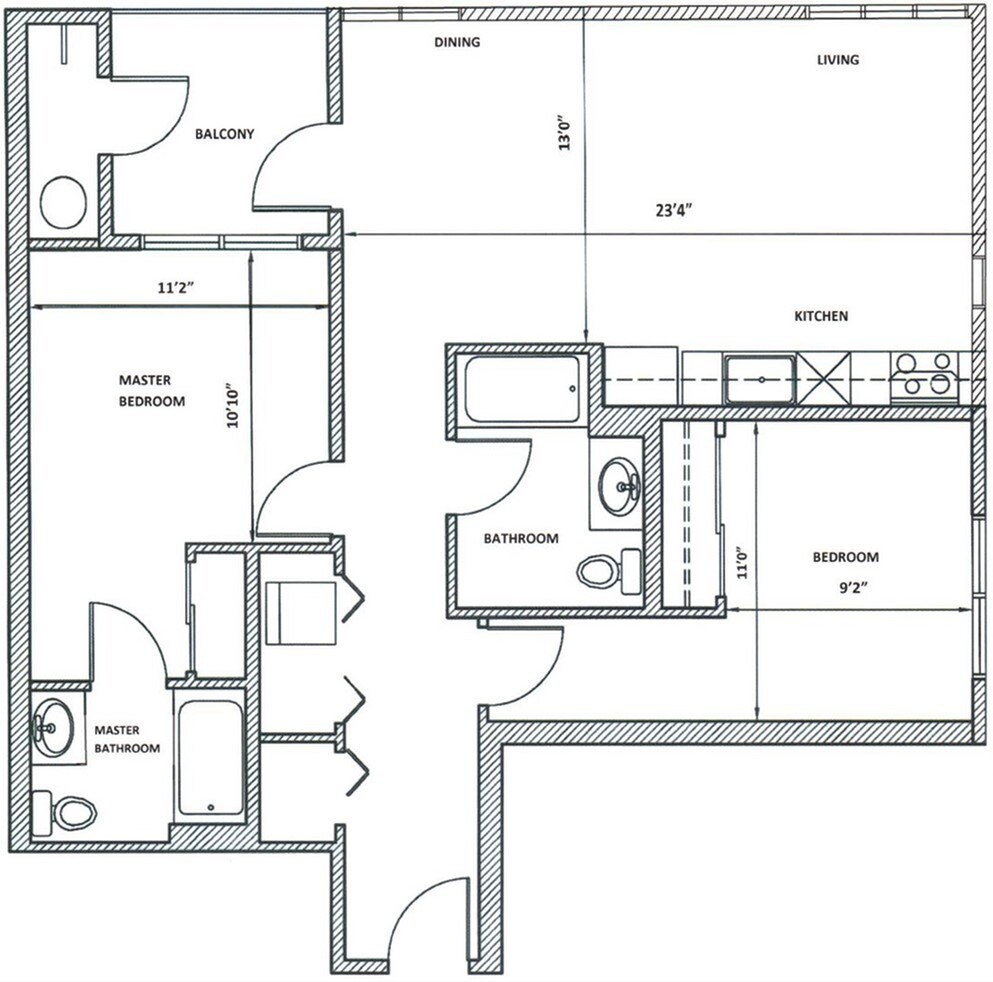 Modelo de apartamento: 2BR/2BA C2 Dormitorios, 2 Baños, 969-970 sq ftDisponible Ahora![]()