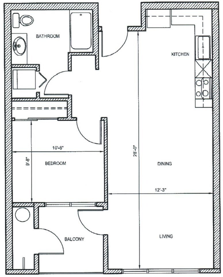 Studio B - Plano 2 Unidad de apartamento: 315Modelo de apartamento: Studio BEstudio, 1 Baño, 540 sq ftDisponible Ahora1 Dormitorio