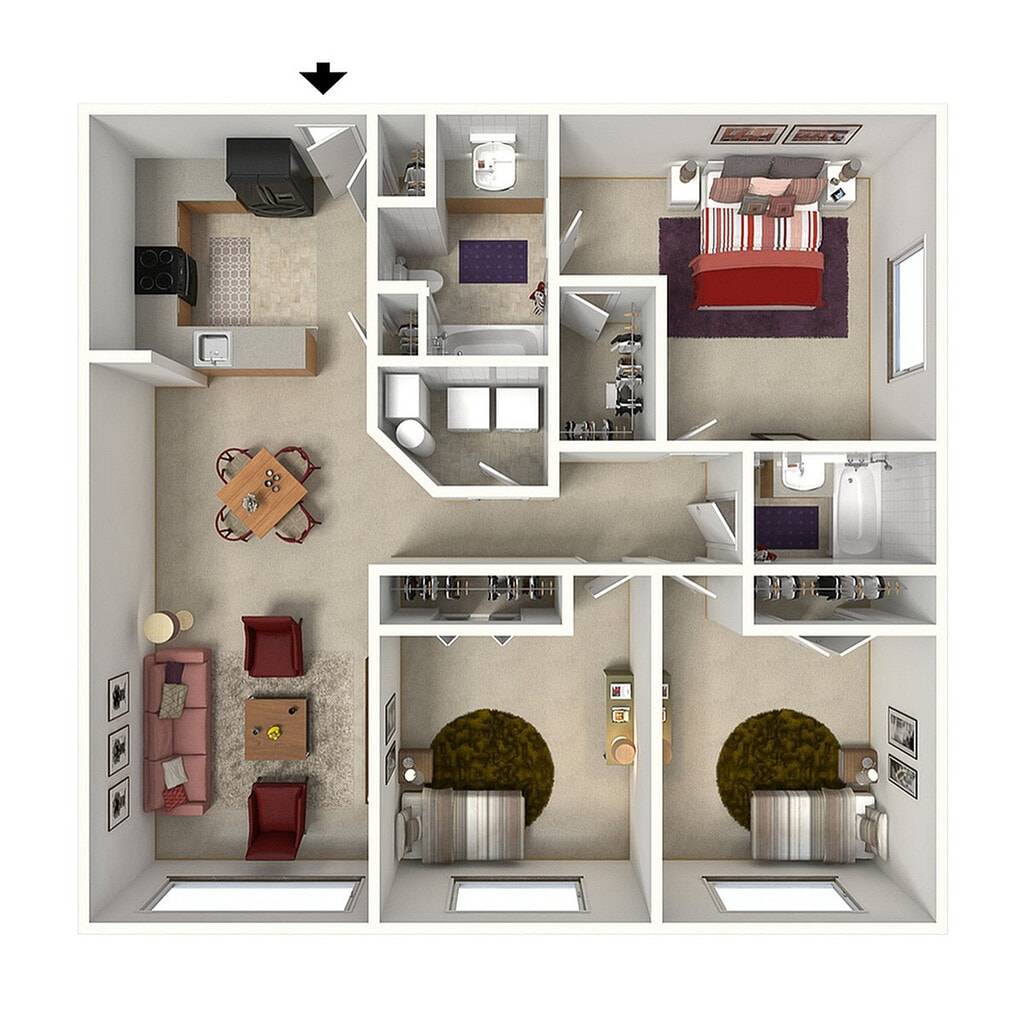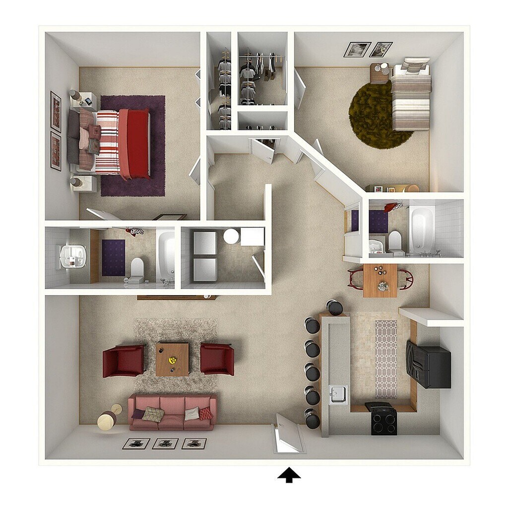 Modelo de apartamento: Abbott2 Dormitorios, 2 Baños, 1010 sq ftDisponible Ahora![]()