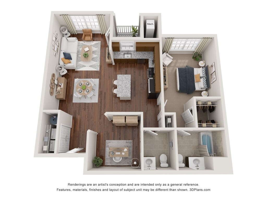 Modelo de apartamento: The DriftwoodLlame para Precios2 Dormitorios, 2 Baños, 1032 sq ftNo Disponible![]()