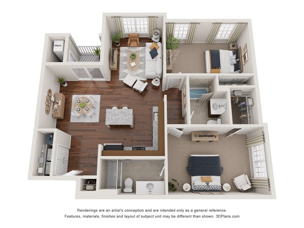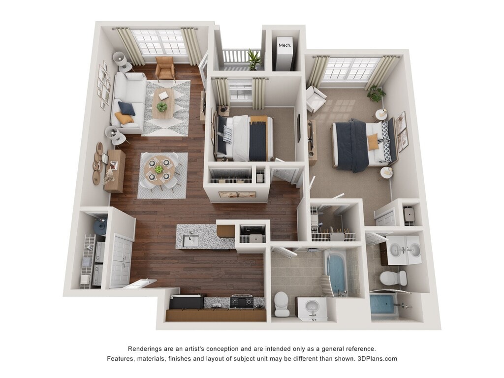 2 Dormitorios, 2 Baños, 1032 pies²Galería del Modelo