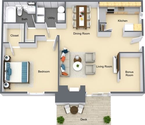 1 Dormitorio, 1 Baño, 895 pies²Disponible AhoraGalería del Modelo