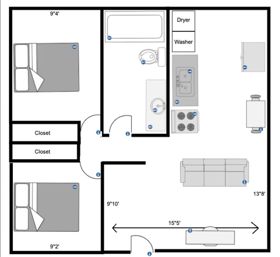2 Dormitorios, 1 Baño, 750 pies²Disponible AhoraGalería del Modelo