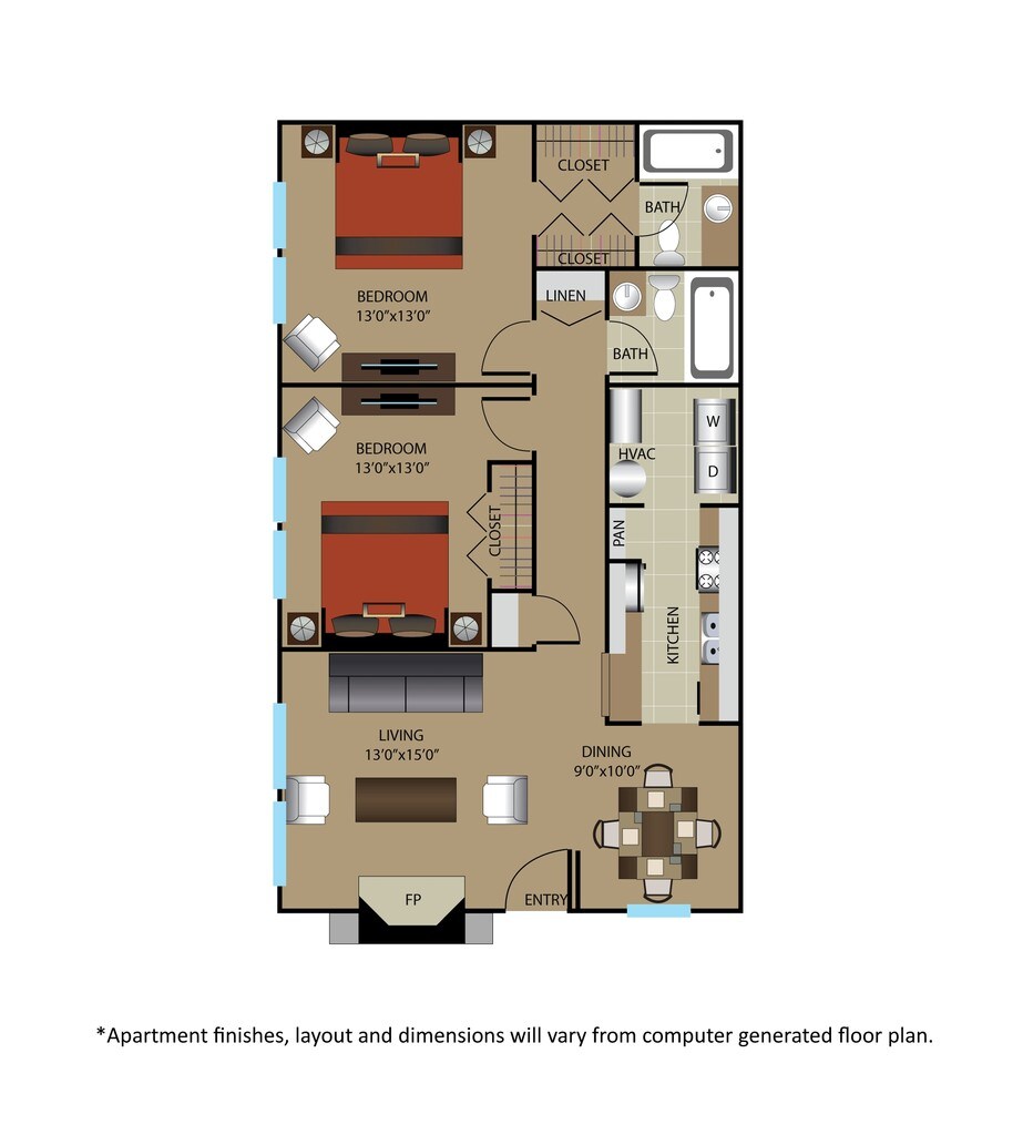 2 Dormitorios, 2 Baños, 1105 pies²El más grandeEsta opción tiene las unidades más grandes para este modeloGalería del Modelo