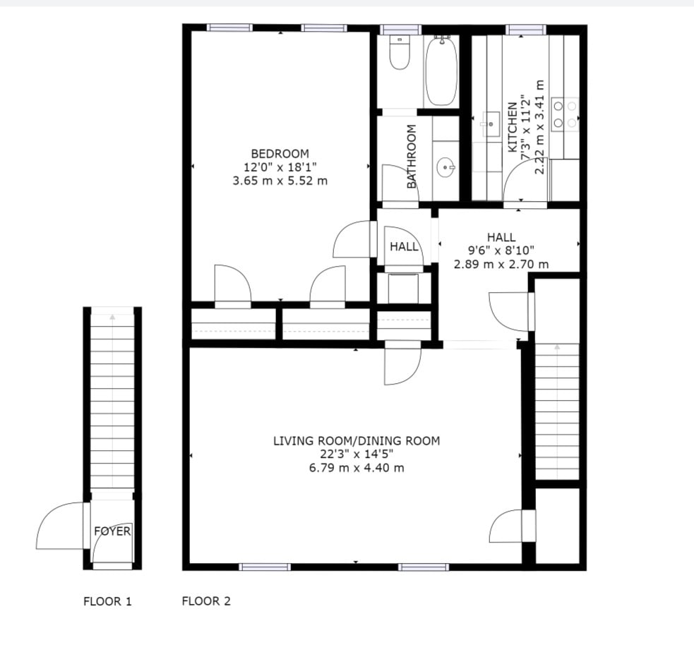 1 Dormitorio, 1 Baño, 718 pies²Disponible AhoraGalería del Modelo