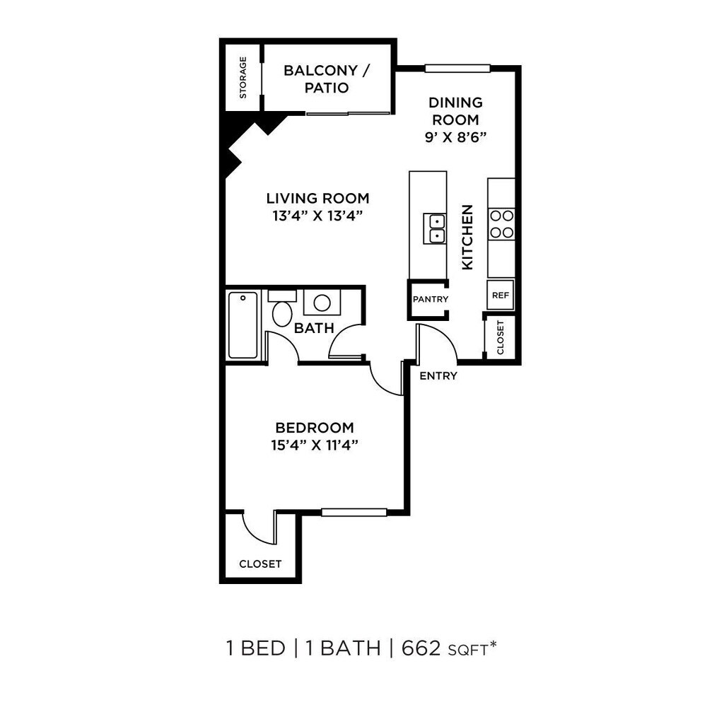 1 Dormitorio, 1 Baño, 662 pies²Galería del Modelo