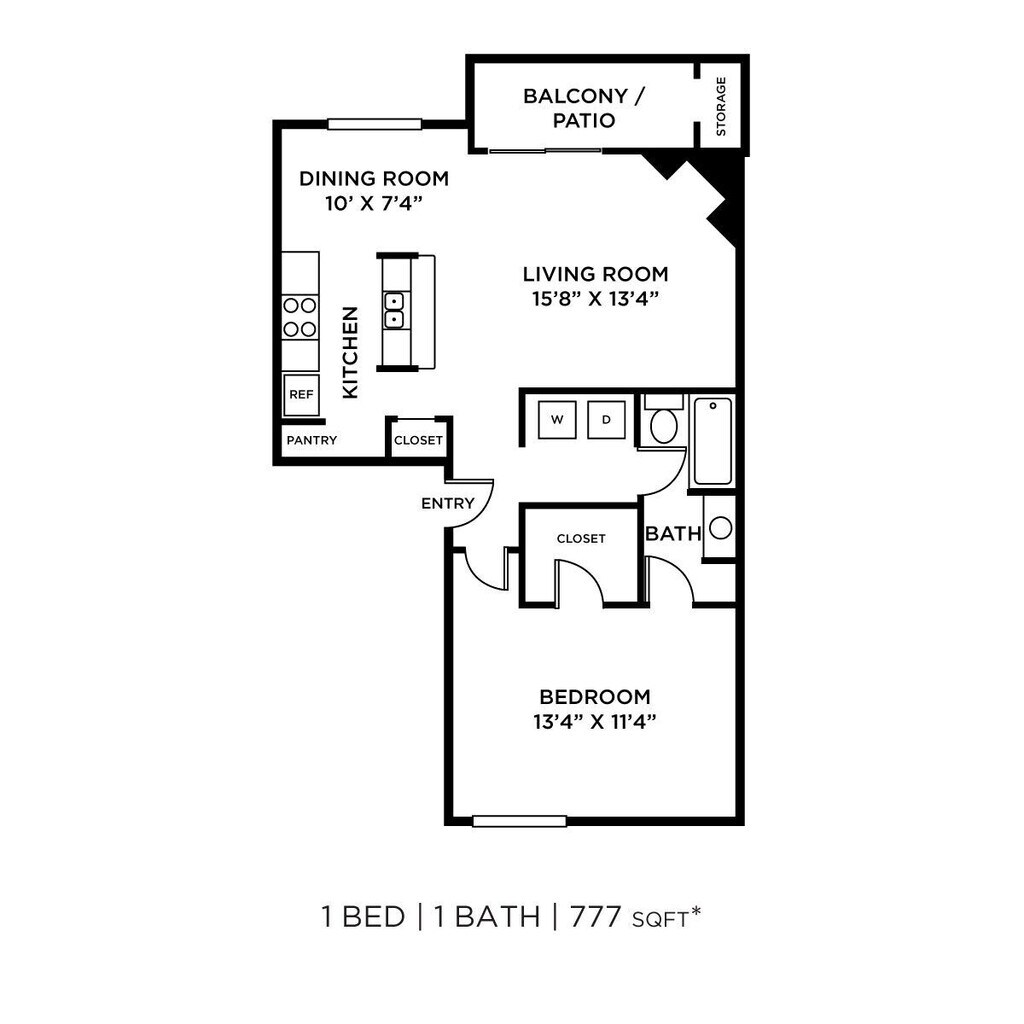 1BL - Plano 1 Unidad de apartamento: 2014Modelo de apartamento: 1BL$1,2491 Dormitorio, 1 Baño, 777 sq ftDisponible December 6, 2025Plano: 1B