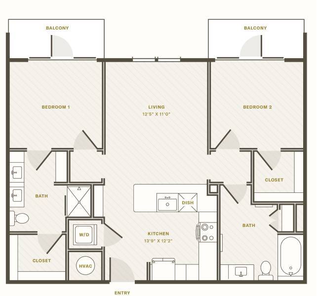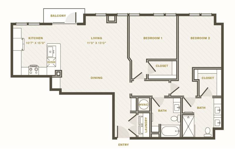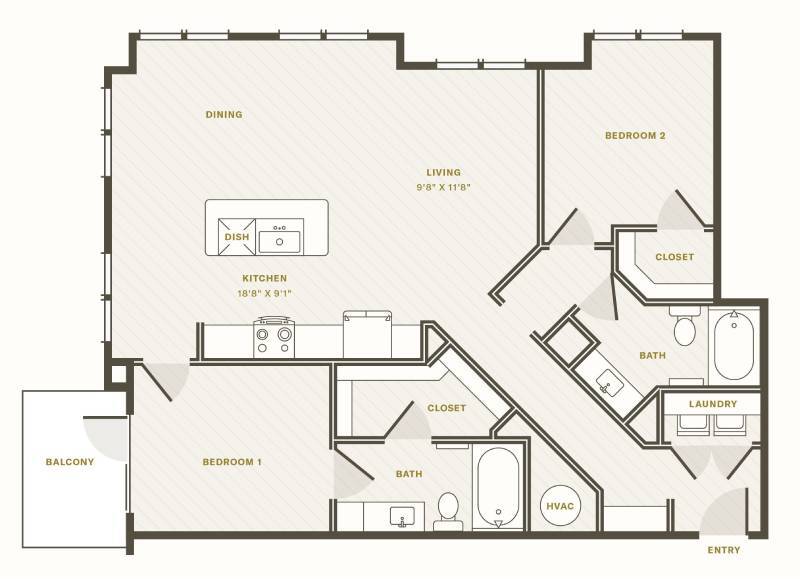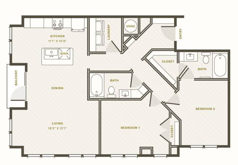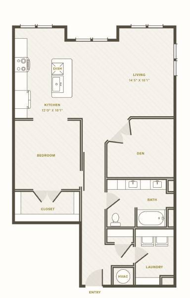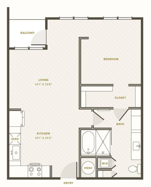1 Dormitorio, 1 Baño, 789 pies²Disponible AhoraGalería del Modelo