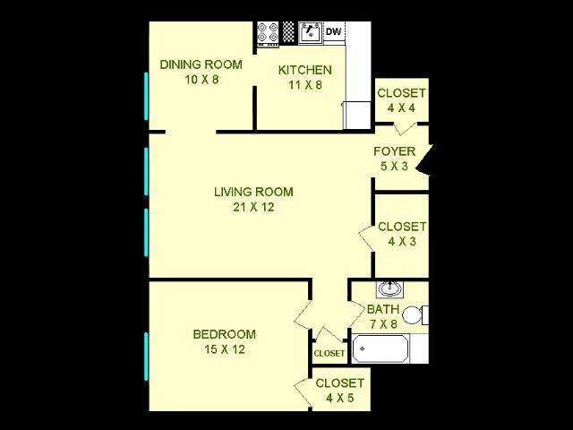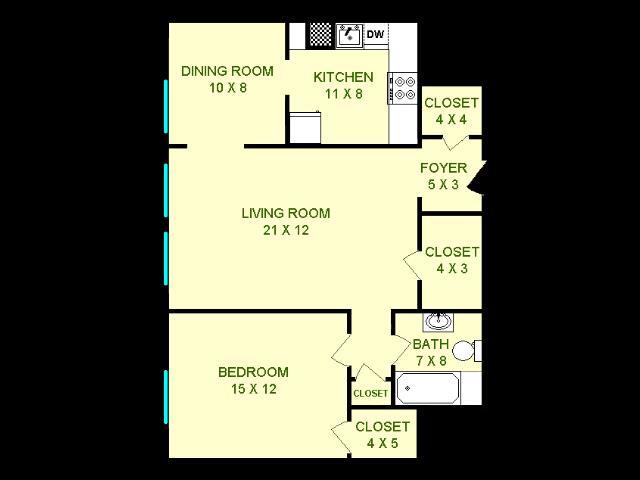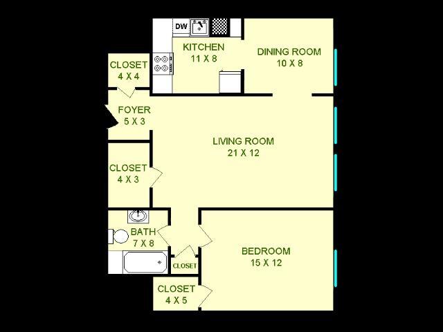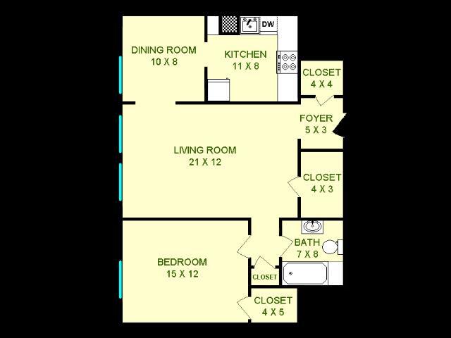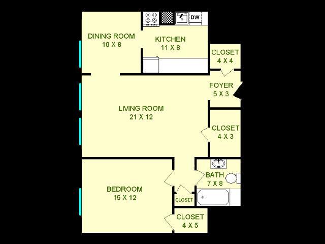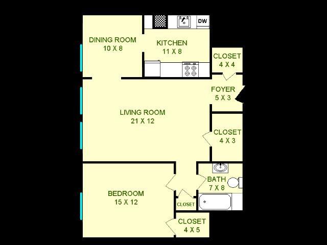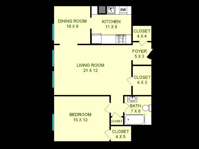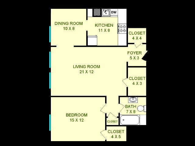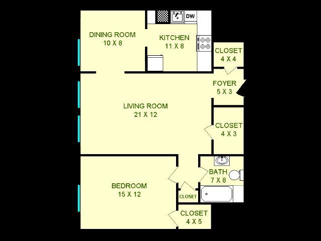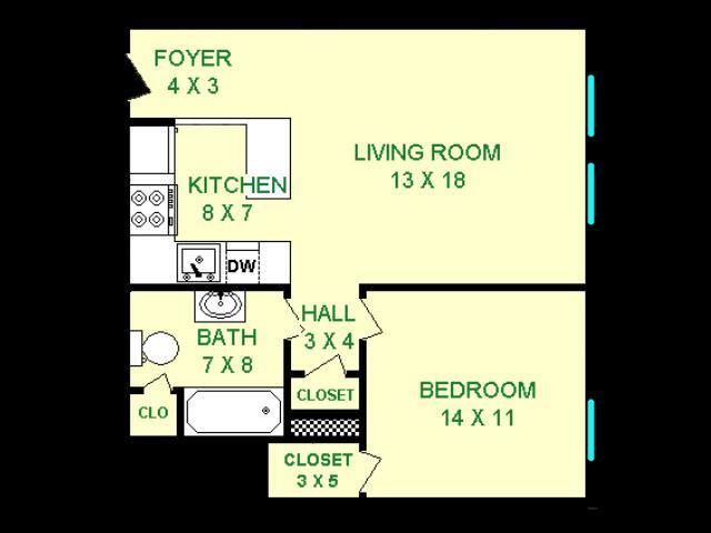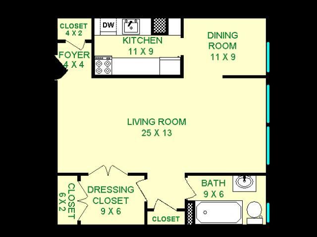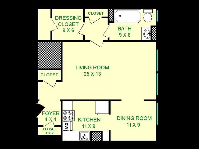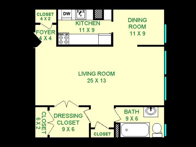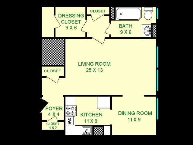 DeVille - Plano 1 Unidad de apartamento: MD-907Modelo de apartamento: DeVille$880Estudio, 1 Baño, 345 sq ftDisponible January 2, 2026PlanosFotos![]()