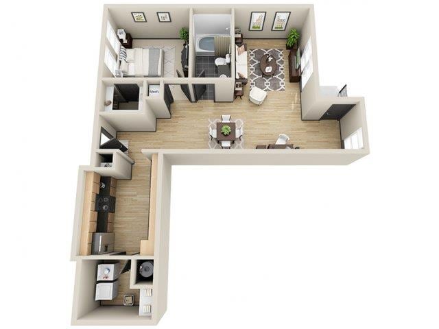 1 Dormitorio, 1 Baño, 653-822 pies²Disponible AhoraGalería del Modelo