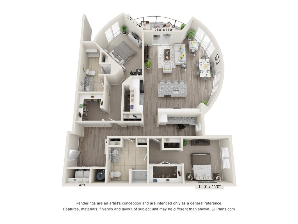 Modelo de apartamento: MarrazziLlame para Precios2 Dormitorios, 2 Baños, 1330 sq ftNo Disponible![]()