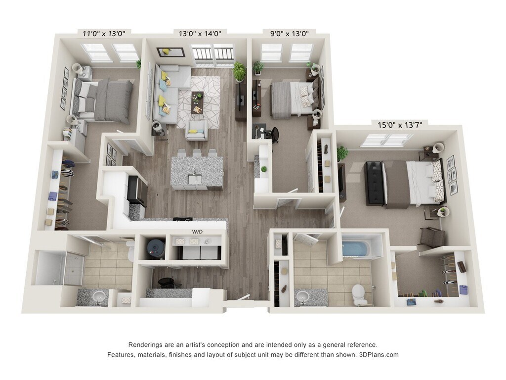 Modelo de apartamento: MonroeLlame para Precios2 Dormitorios, 2 Baños, 1170 sq ftNo Disponible![]()
