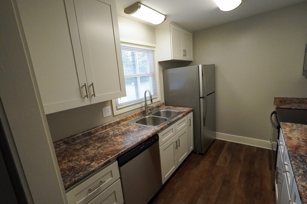 Walk to classes in Levine Hall (home to App State’s BCHS) one block from Mossy Creek Apts. Enjoy these updated 2 BR, 2 BA Apts with an upscale kitchen containing stylish wood cabinets that extend to the ceiling, track lighting and a pass through window to the dining area. Stainless steel appliances including refrigerator, stove, microwave, and dishwasher complete the kitchen. Other features include; washer/dryer and ceiling fans. Easy to maintain “wood look” Luxury vinyl plank flooring is in the main living areas and carpet in the bedrooms. It has easy vehicle accessibility year round and a super convenient location on the edge of Boone’s main shopping area. Shop nearby at Walmart, Lowes, Food Lion and many other retail stores and restaurants. The Boone Greenway Trail passes by the front of the building. Ride “Free” on the Red or Express AppalCART bus to go to the main App State campus or elsewhere in Boone NC.