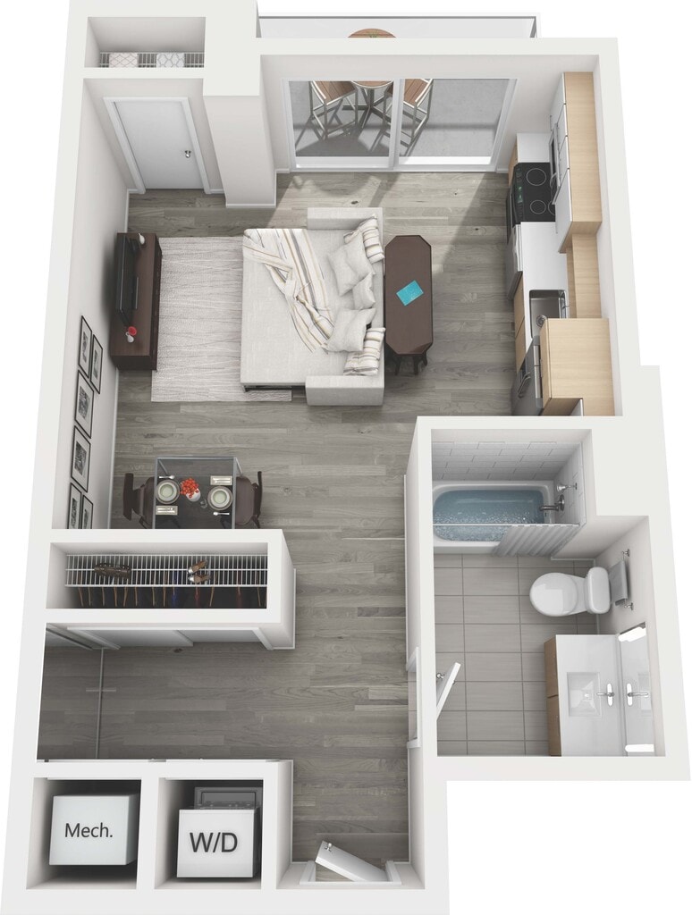 Art Deco - Plano 1 Unidad de apartamento: 01-1504Modelo de apartamento: Art DecoDesde $2,085Estudio, 1 Baño, 481 sq ftDisponible March 2, 20261 Dormitorio