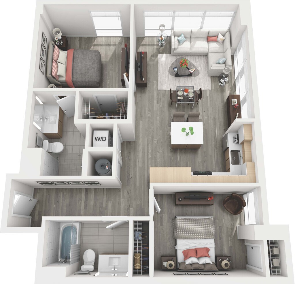 1 Dormitorio, 1 Baño, 726-753 pies²Disponible AhoraEl más baratoEsta opción tiene los precios más bajos para este modeloGalería del Modelo